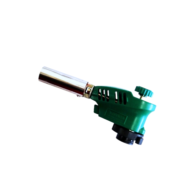 Горелка оснащена пьезоподжигом и вентилем тонкой регулировки пламени. Для работы потребуется балонн на основе газа пропан/бутан.