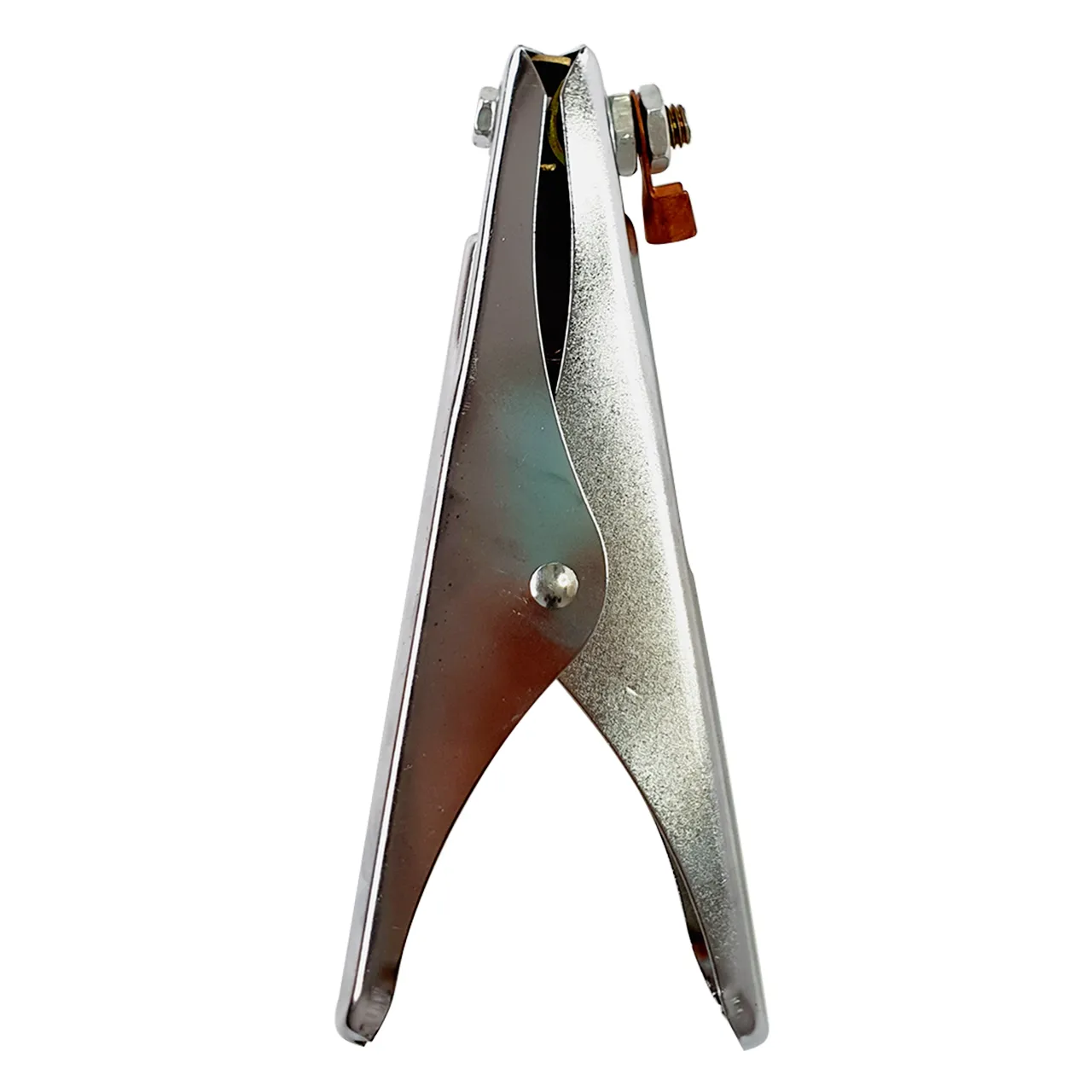 Сжатие «челюстей» обеспечивается пружиной, вставленной с другой стороны штифта. Зажим изготовлен из стали с никелированным покрытием.