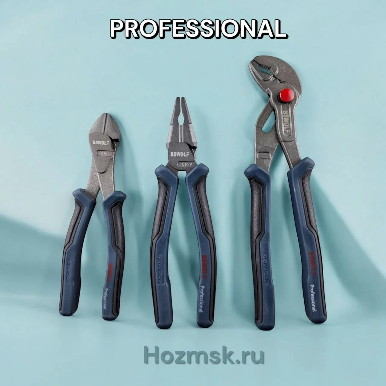 Набор шарнирно-губцевых инструментов CRV, бокорезы 180 мм, плоскогубцы 200, клещи 250, "Professional