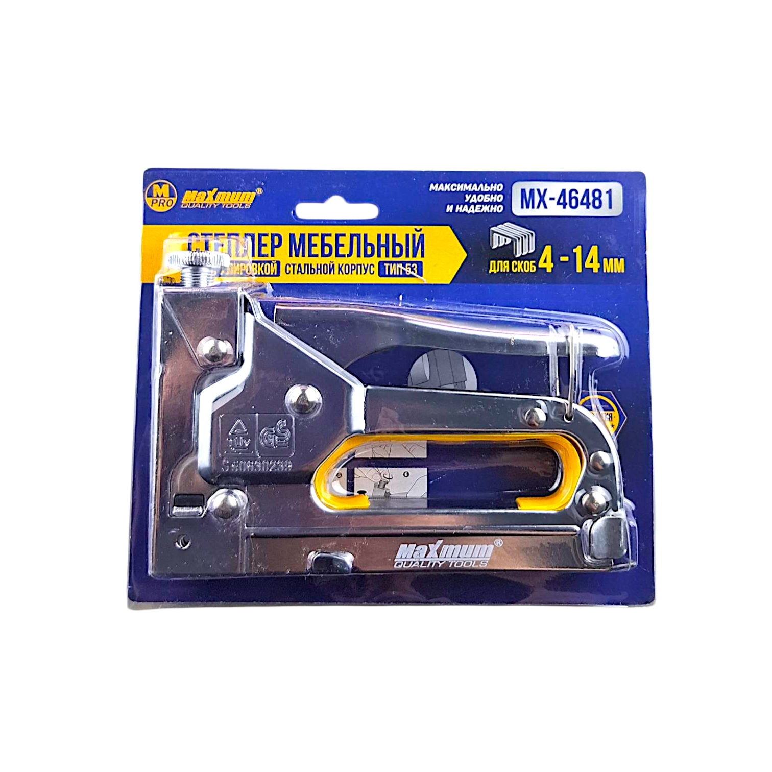 Скобозабивной пистолет механический в комплекте со скобами 200 шт. (8 мм) от бренда «MAXIMUM QUALITY TOOLS» (Максимально Качественный Инструмент) — это надежный инструмент для интенсивного использования. Модель идеально подходит для обивки мебели, монтажа кабеля, а также крепления утеплителя и пленки к различным основаниям. Ударный мебельный степлер (тип 53) работает со скобами 4–14 мм, оснащен верхним регулятором силы удара и фиксатором рукоятки, предотвращающим случайное раскрытие. Прочный стальной корпус с прорезиненной ручкой обеспечивает удобство при длительной работе. Наличие регулировки натяжения пружины позволяет точно дозировать усилие, исключая повреждение материалов при обшивке.