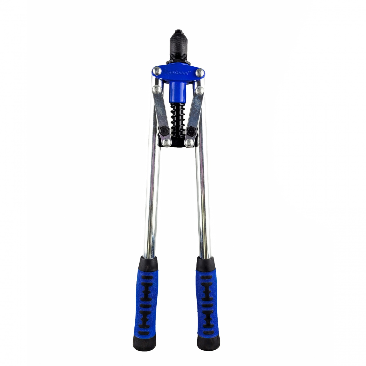 Рукоятки двуручного заклепочника имеют специальный рельефный дизайн и прорезиненные вставки, благодаря чему не скользят и не травмируют руки.