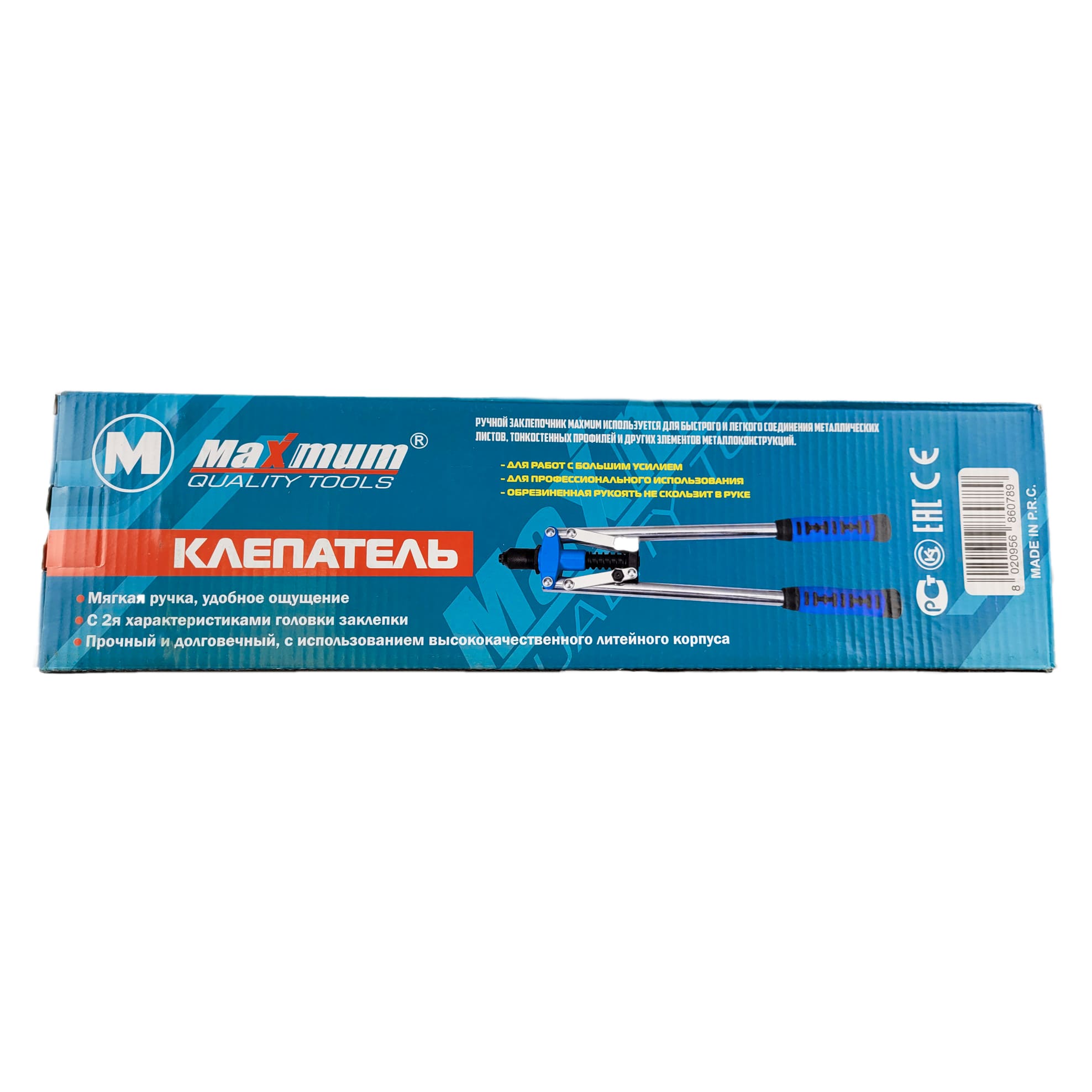 Усиленный механический заклепочник от "Maximum Quality Tools" выдерживает высокие рабочие нагрузки и предназначен для установки заклепок из алюминия. Повышенная прочность инструмента достигается благодаря тому, что рабочие губки изготовлены из стали и закалены. Специальный механизм - мультипликатор, позволяет снизить усилие, необходимое для установки заклёпки. Корпус изготовлен из специального сплава методом литья под давлением и покрыт лакокрасочным покрытием, предотвращающим появление коррозии.