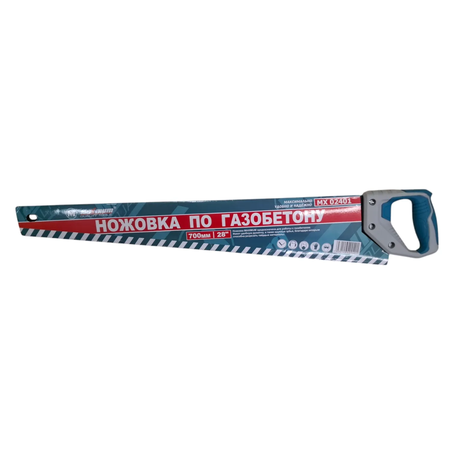 Ножовка по газобетону 700 мм "Maximum Quality Tools" используется при выполнении строительных или ремонтных работ. Пенобетон обладает достаточной прочностью и абразивностью, поэтому применять для его распиливания пилку по дереву не рационально, так как это приводит к скорейшему притуплению ее зубцов. Ножовка по пенобетону лишена такого свойства, так как ее зубья покрыты твердосплавными победитовыми напайками. Это позволяет не только продлить срок службы инструмента, но еще и облегчить процесс пиления материала. Данный инструмент применяется с целью доработки форм, получая тем самым пеноблоки необходимого размера. Для изготовления доборных блоков в монтажной подгонке, так как в ряду всегда требуется подрезать как минимум один блок.