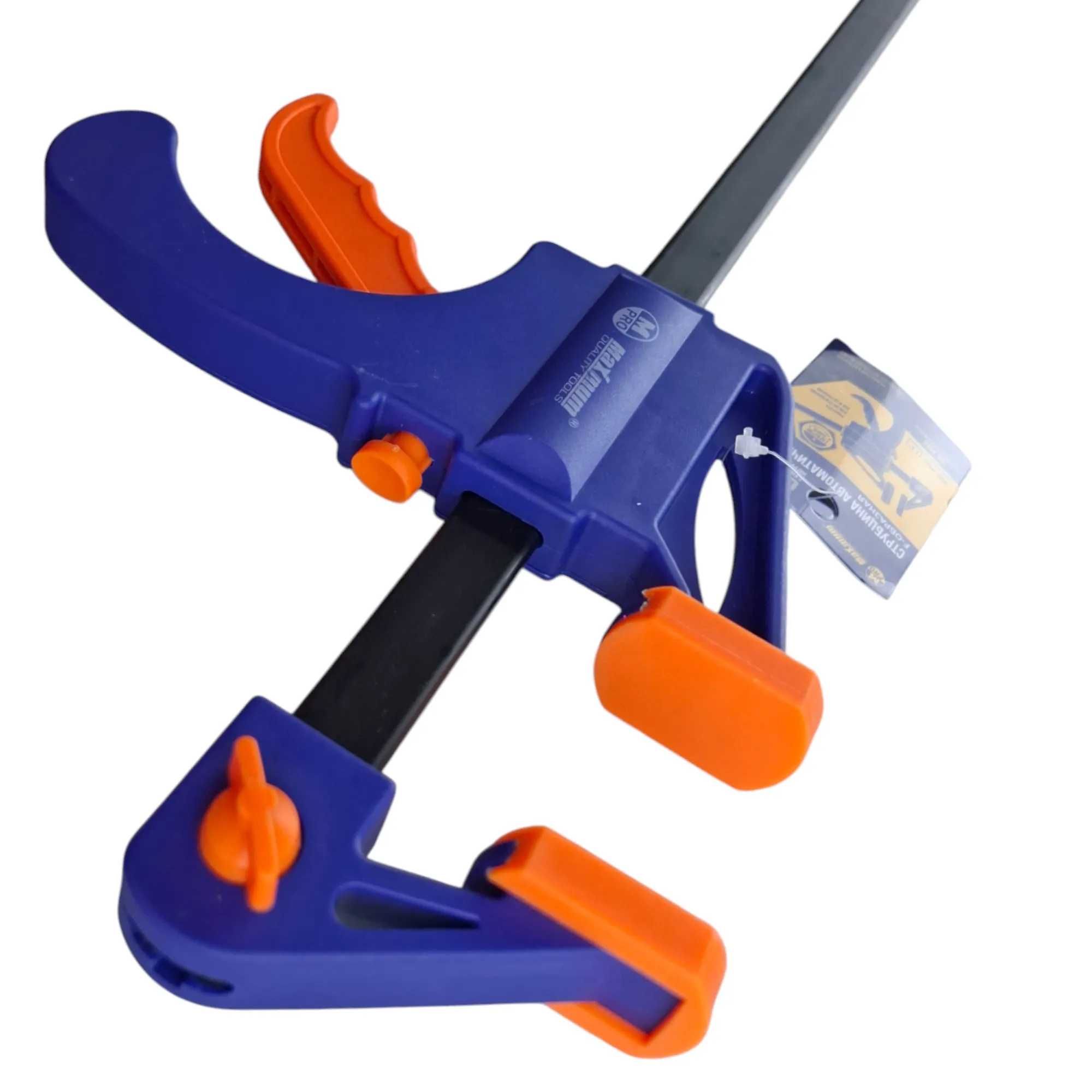 · Мгновенная фиксация одной рукой: Удобный механизм с фиксатором и кнопкой сброса обеспечивает быстрое зажатие и освобождение заготовок. Вам больше не нужно тратить время на закручивание традиционных винтовых струбцин.
