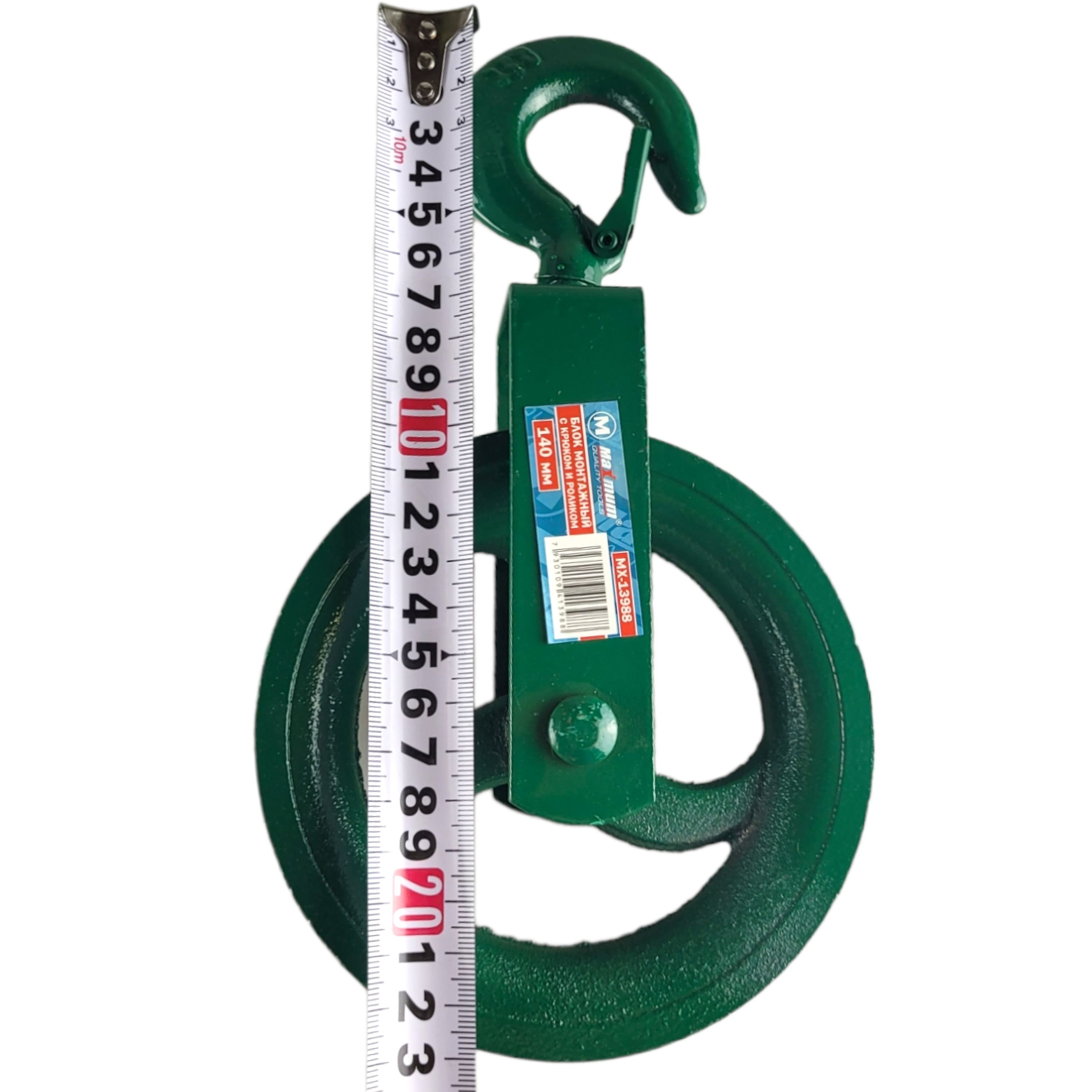 Блок состоит из одного ролика (шкива) с U-образной канавкой 20 мм. Монтажный блок 140 мм и крюк выполнен из высокопрочной стали и покрыт краской, которая предотвращает появление коррозии.