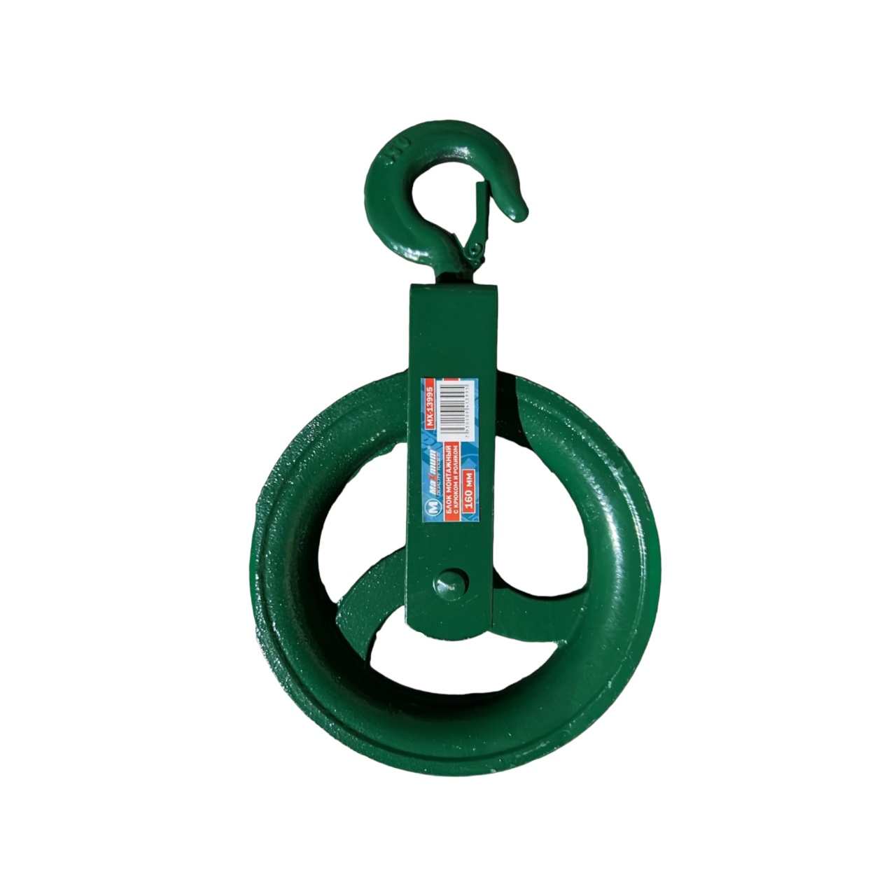 Блок полиспаст с крюком и шкив-роликом диаметром 160 мм используется для увеличения грузоподъемности или изменения направления тяги. Шкив-ролик с U-образной канавкой 25 мм. Блок монтажный на 1 тонну и крюк выполнены из высокопрочной стали и покрыты краской, поэтому могут быть использованы как на улице, так и помещениях с высокой влажностью.