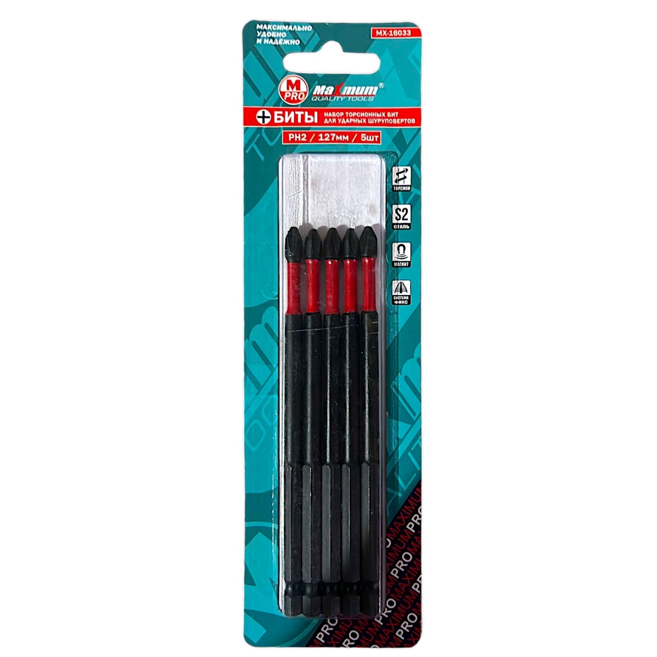 Набор ударных длинных бит для заворачивания PH2 от "Maximum Quality Tools" включает в себя 5 насадок.
