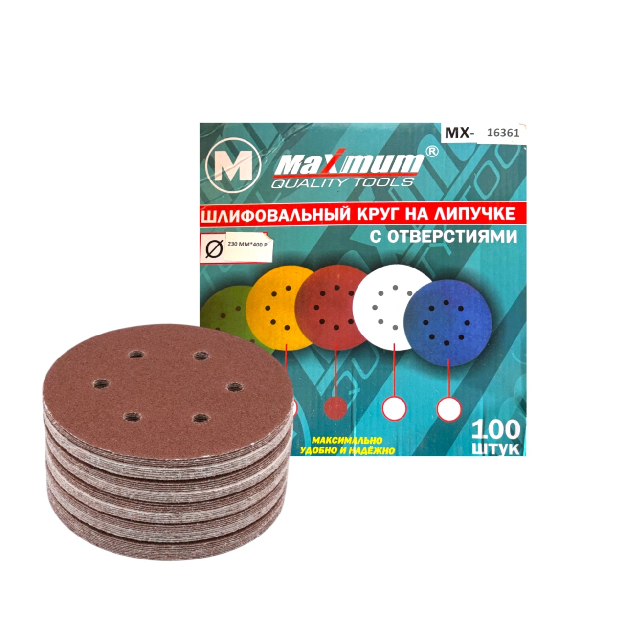Шлифовальный круг с отверстиями "MAXIMUM" МХ 16361 (225 мм, P 400) — это качественный, удобный и эффективный расходный материал для финишных этапов шлифовки. Если вам нужно подготовить поверхность под покраску или обработать промежуточные слои ЛКП, этот круг станет отличным выбором.